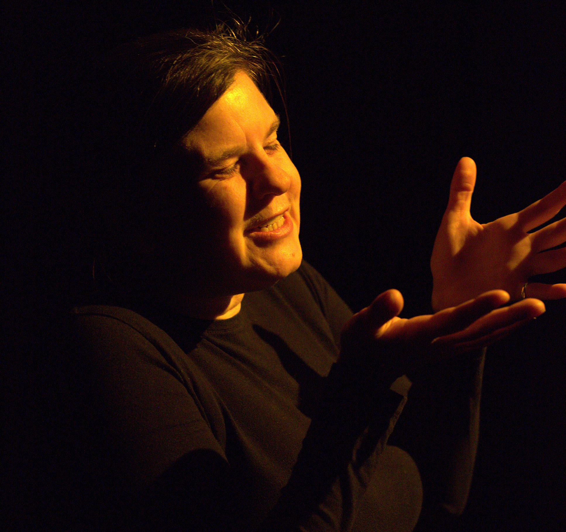 iPhoto caption: Mazin Elsadig in 'The Comeuppance.' Photo by Dahlia Katz. Set design by Shannon Lea Doyle, costume design by Ming Wong, lighting design by Jason Hand.