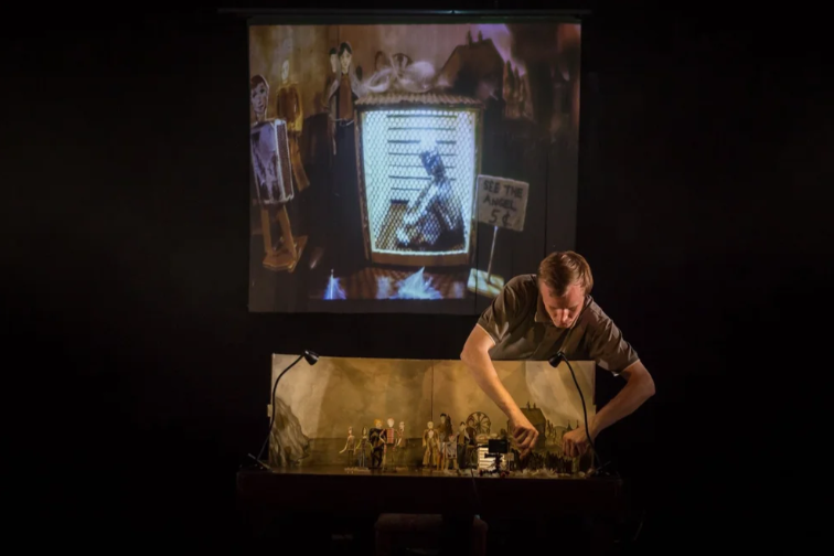 “We start with the relationship with the audience and the actors,” he said. “Then we bring in a little bit of sound, then props [and miniatures], then lighting, then video.” This careful, minimalist introduction of technical elements lets audiences’ imaginations lead the way.