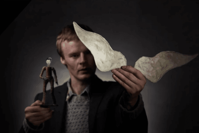A Very Old Man with Enormous Wings has toured internationally since 2022, with a shifting cast of performers. Halligan and Beaman, the original actors and co-adaptors, will reprise their roles for the Toronto premiere.